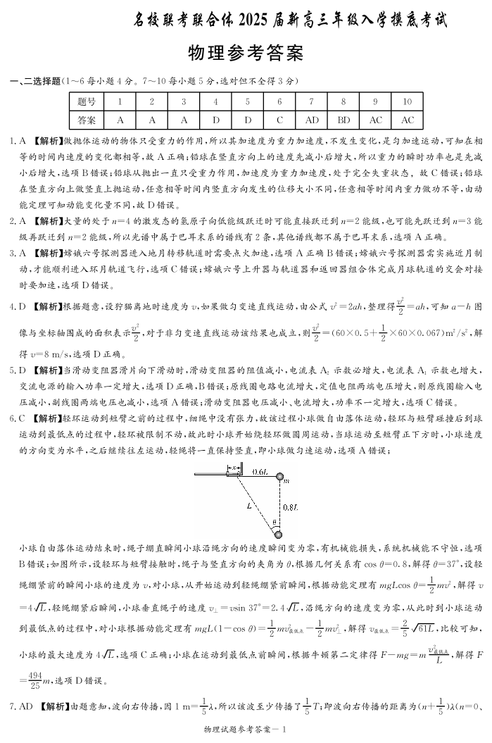 湖南省名校联合体2024-2025学年高三上学期入学摸底考试+物理答案