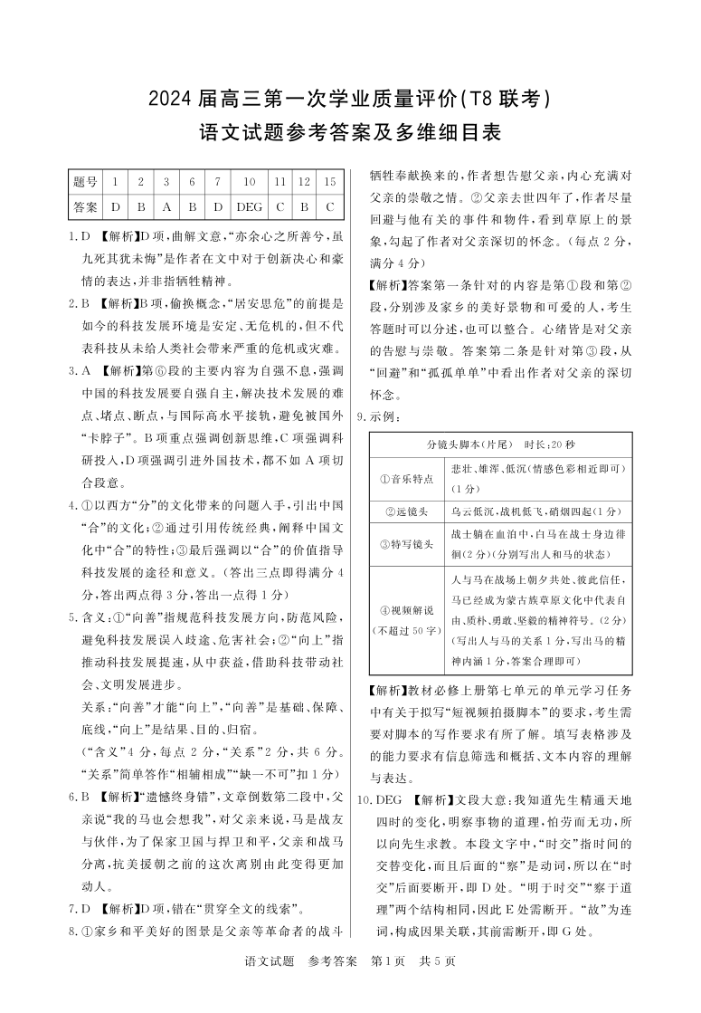 2024届八省八校高三第一次学业质量评价(T8联考)语文答案