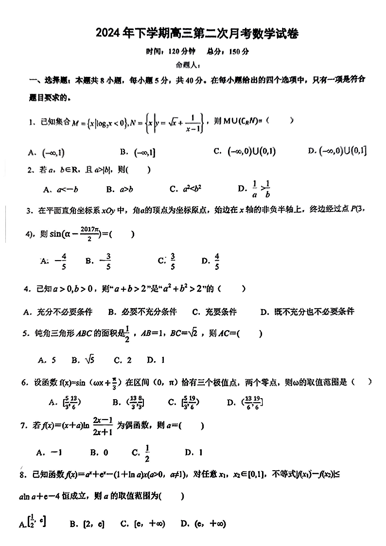 湖南省邵东市第一中学2025届高三9月第二次月考+数学