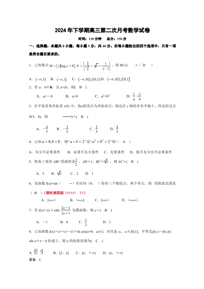 湖南省邵东市第一中学2025届高三9月第二次月考+数学答案