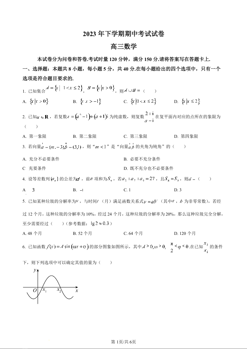 湖南省邵阳市武冈市2024届高三上学期期中考试 数学