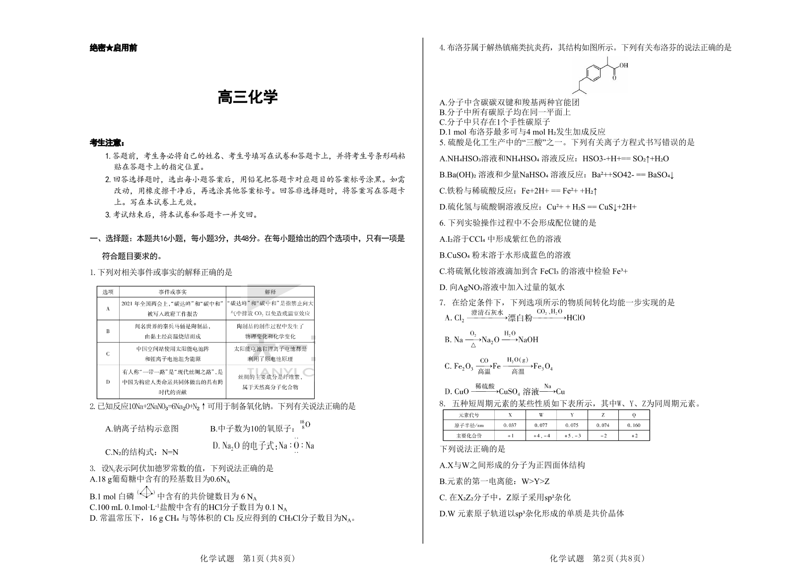 湖南省天一大联考2023-2024学年11月份高三年级三联 化学