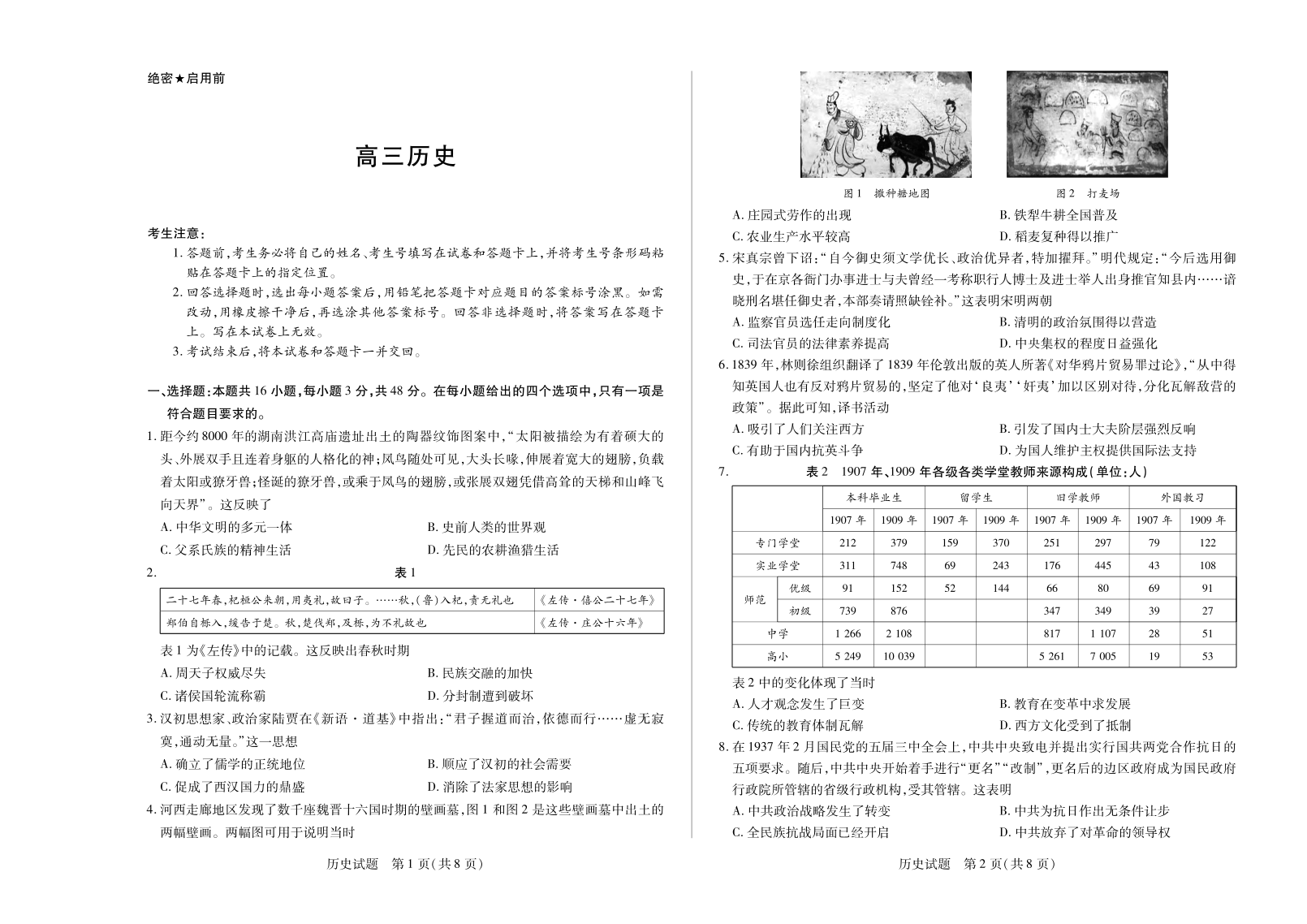湖南省天一大联考2023-2024学年11月份高三年级三联 历史