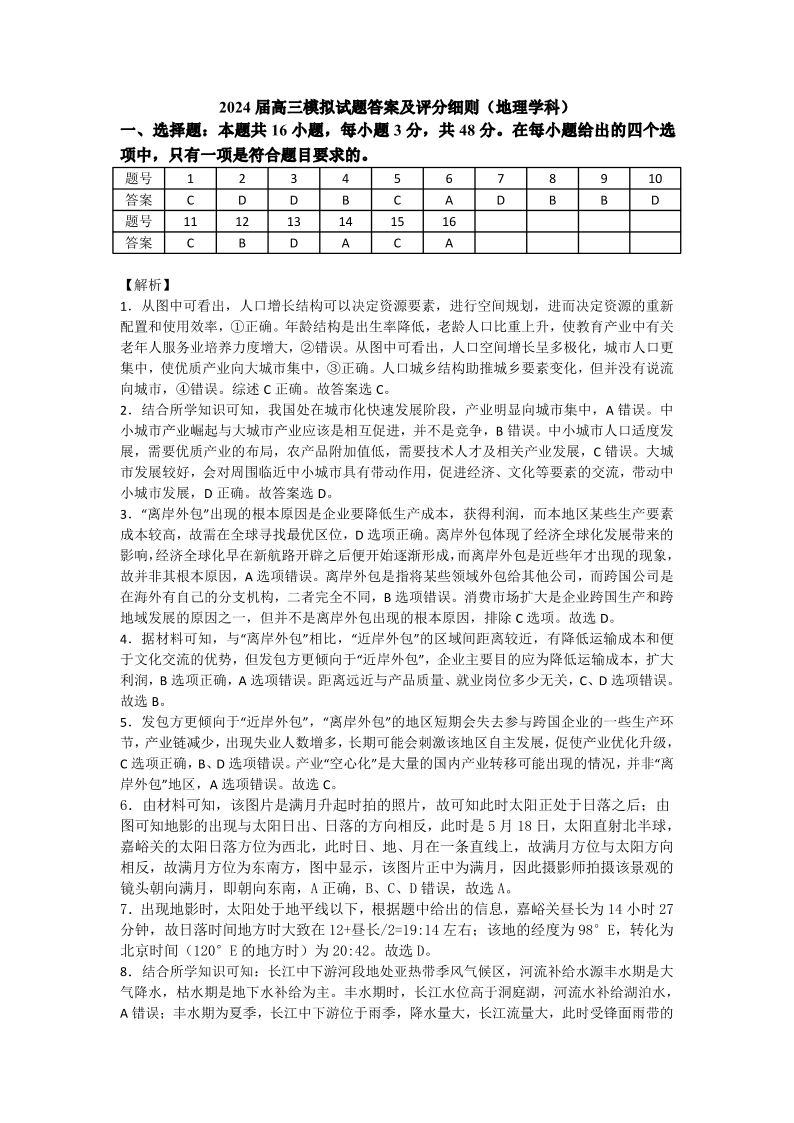 湖南省湘西州吉首市2024届高三上学期第二届中小学生教师解题大赛 地理参考答案