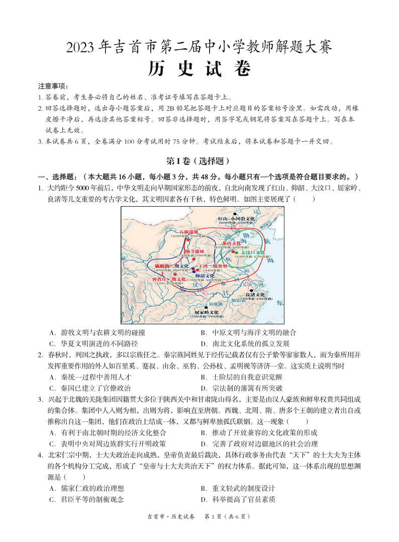 湖南省湘西州吉首市2024届高三上学期第二届中小学生教师解题大赛 历史