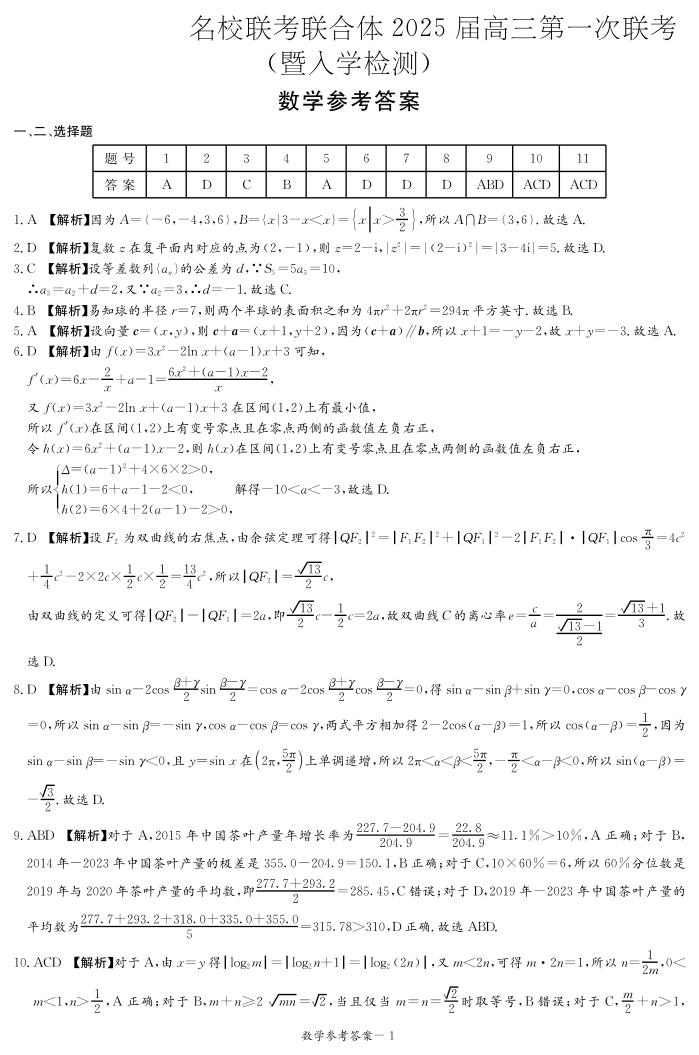 湖南省炎德英才名校联考联合体2025届高三第一次联考+数学答案