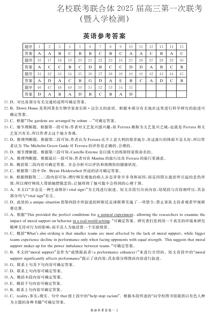 湖南省炎德英才名校联考联合体2025届高三第一次联考+英语答案