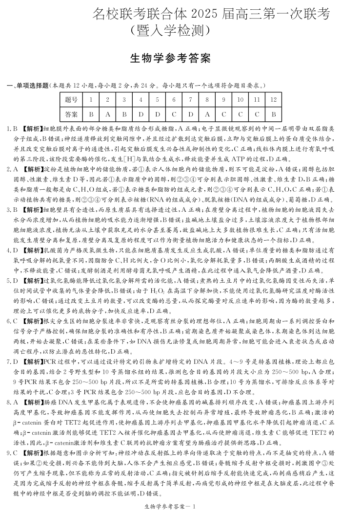 湖南省炎德英才名校联考联合体2025届高三第一次联考+生物答案