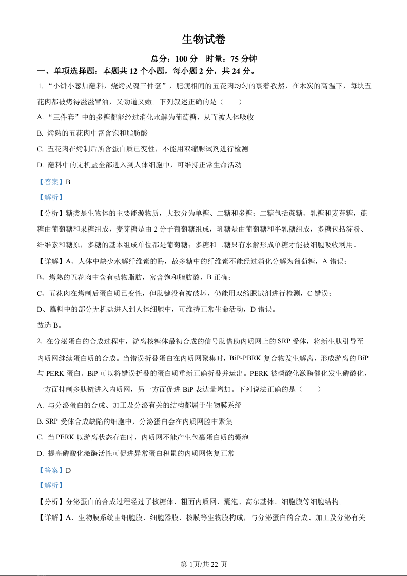 湖南省岳阳县第一中学、汨罗市第一中学2023-2024学年高三上学期11月期中联考 生物答案