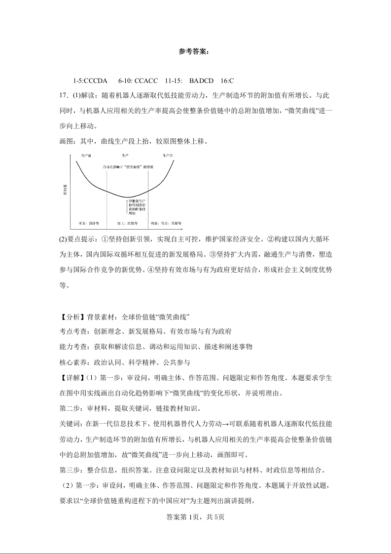湖南省岳阳县第一中学、汨罗市第一中学2023-2024学年高三上学期11月期中联考 政治答案