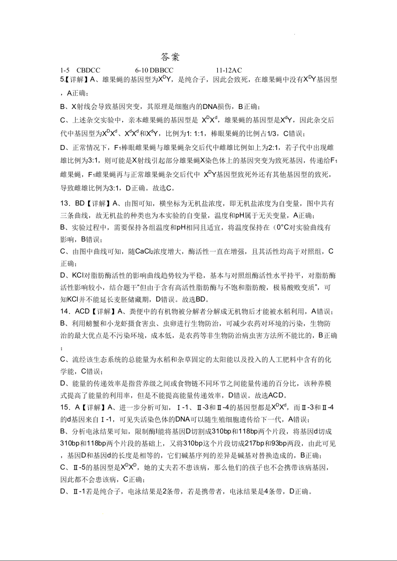 湖南省长沙市浏阳市第一中学2024年6月份高考适应性考试+生物答案