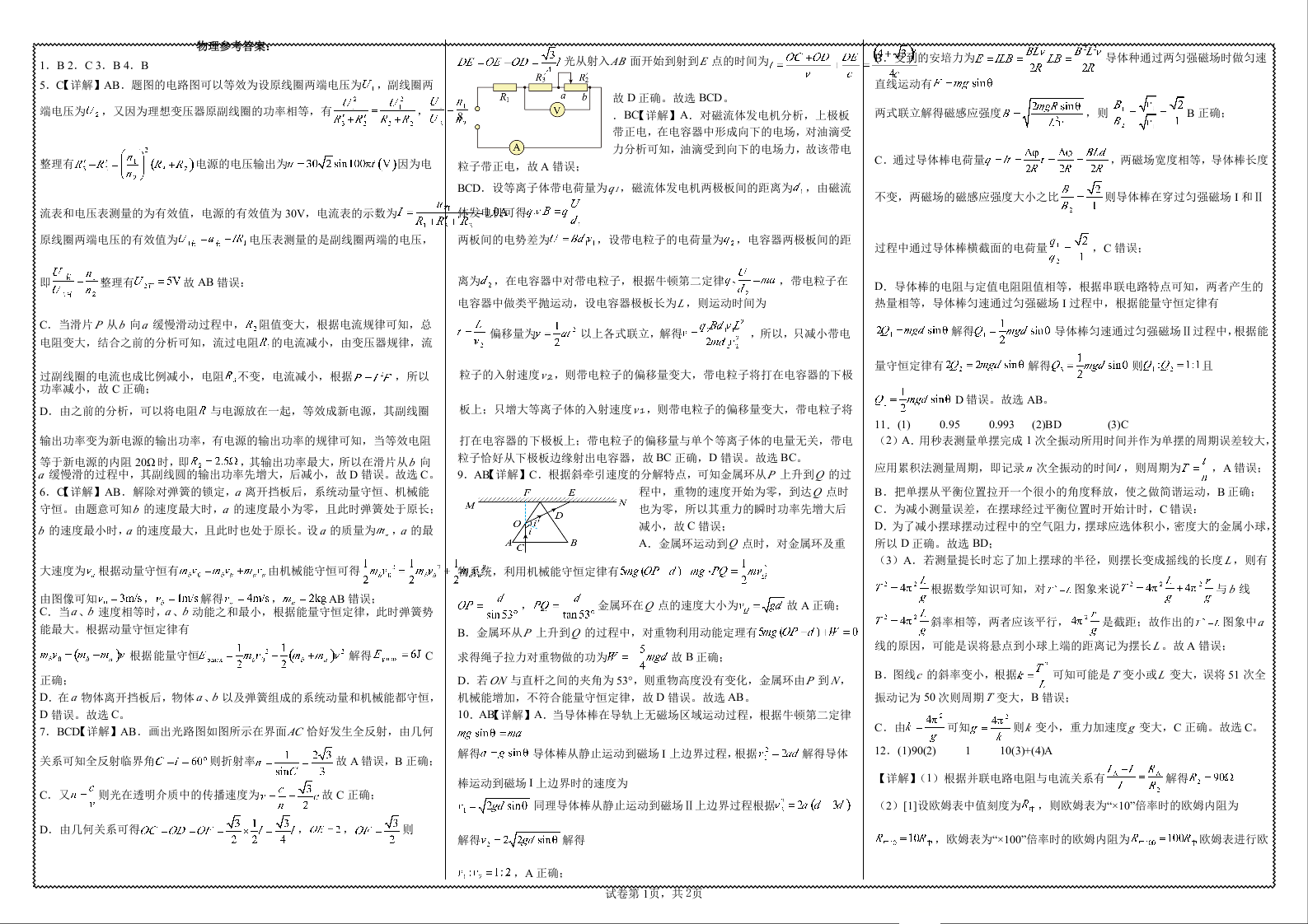 湖南省长沙市浏阳市第一中学2024年6月份高考适应性考试+物理答案