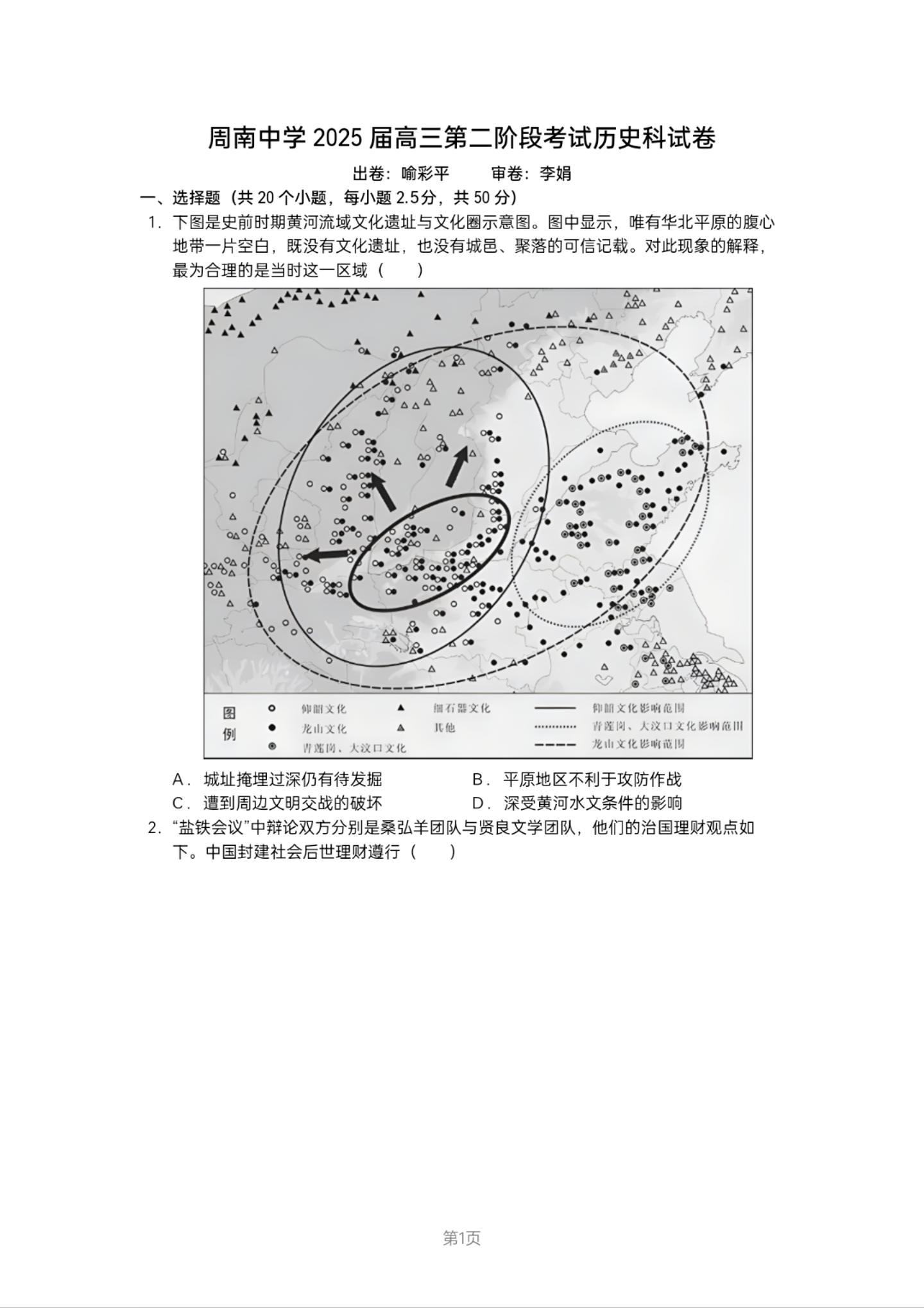 湖南省长沙市周南中学2025届高三上学期第二阶段考试+历史