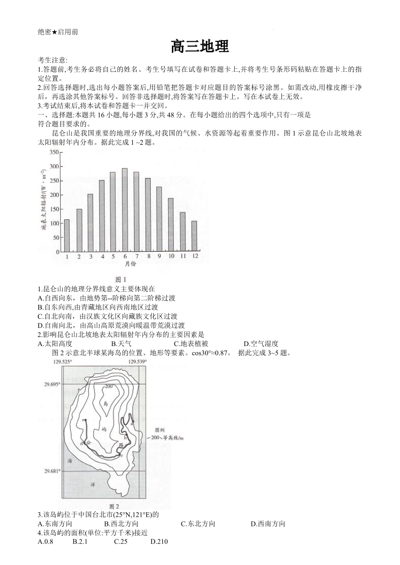 天一大联考2024-2025学年(上)湖南高三一联+地理