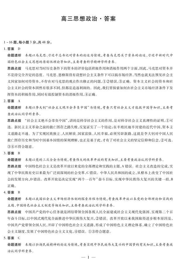 天一大联考2024-2025学年(上)湖南高三一联+政治答案