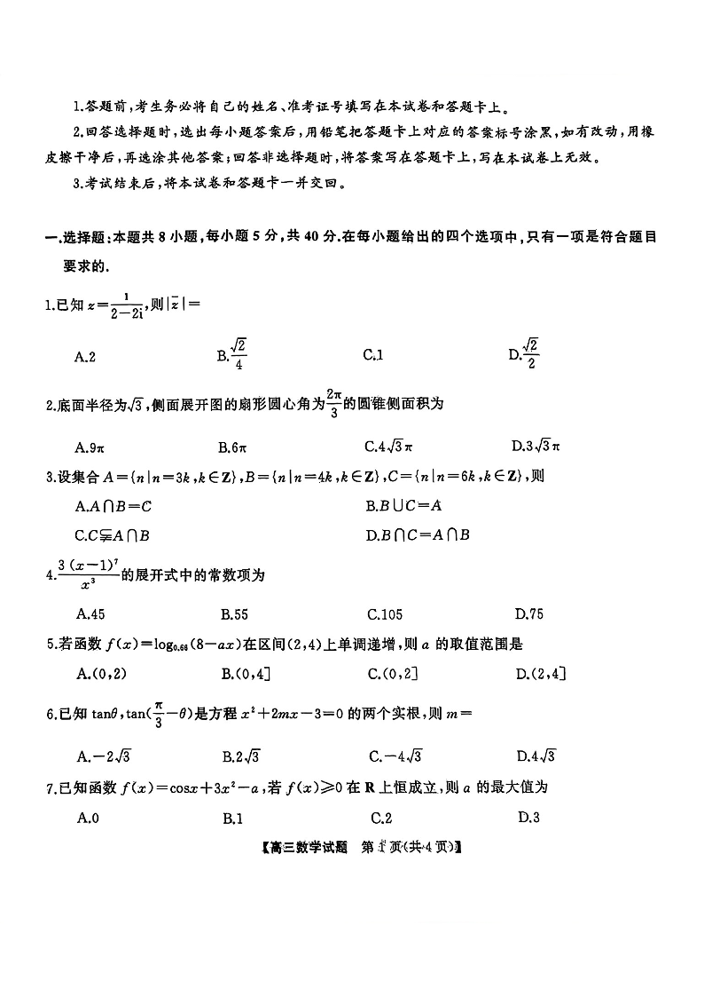 天壹名校联盟&三湘名校教育联盟2025届高三第一次联考+数学