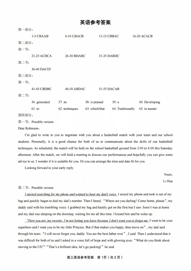 安徽皖江名校联盟2024届高三上学期10月阶段考试 英语答案