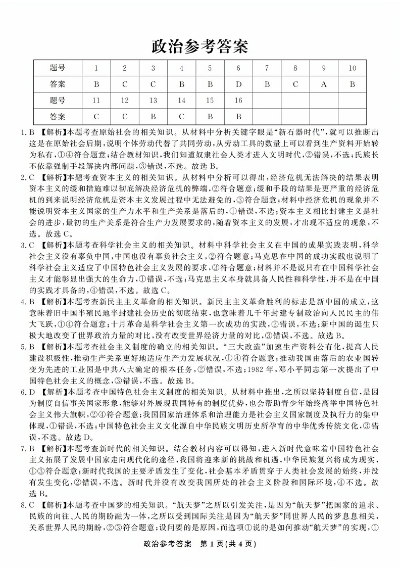 安徽皖江名校联盟2024届高三上学期10月阶段考试 政治答案