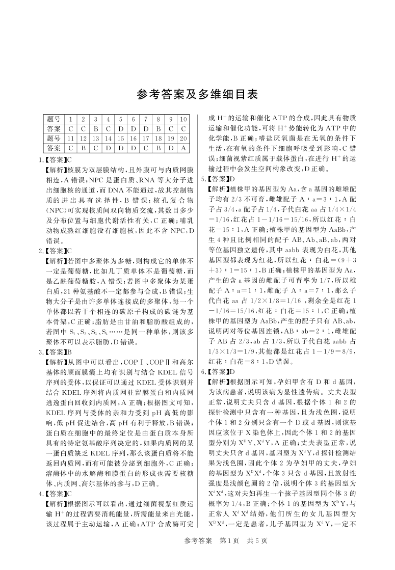 安徽省皖东智校协作联盟2024届高三上学期10月联考 生物学答案