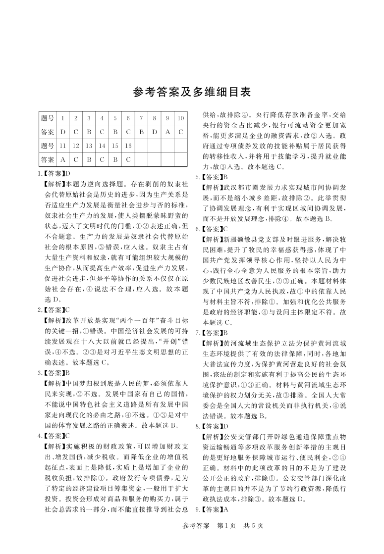 安徽省皖东智校协作联盟2024届高三上学期10月联考 政治答案