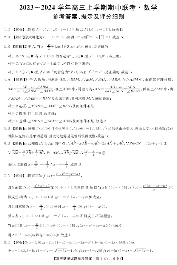 23年11月五校联盟-数学答案