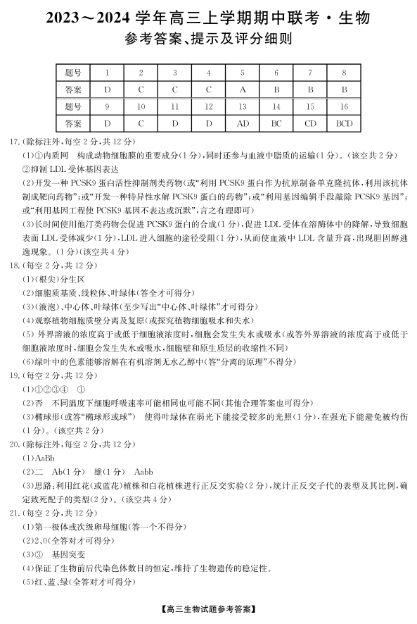 23年11月五校联盟-生物答案
