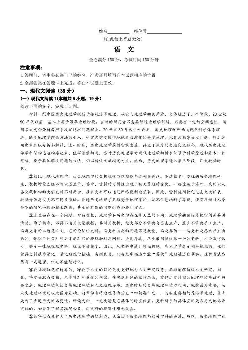安徽省“皖江名校联盟”2023-2024学年高三上学期12月月考 语文