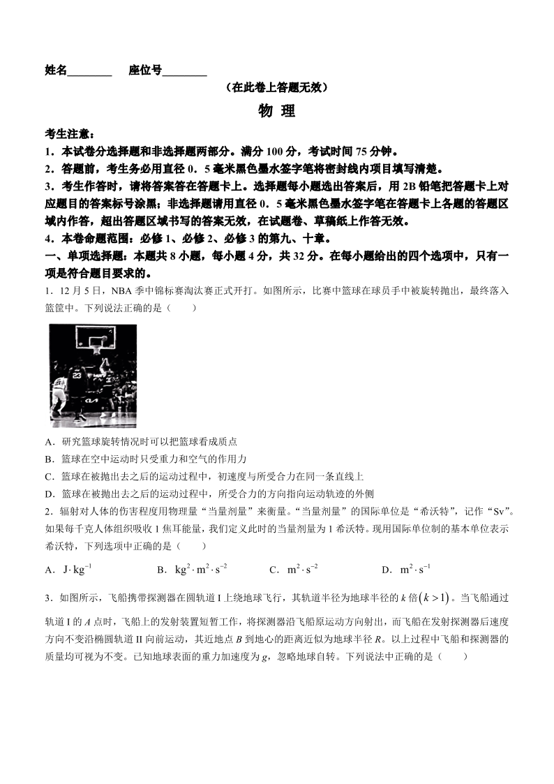 安徽省“皖江名校联盟”2023-2024学年高三上学期12月月考 物理