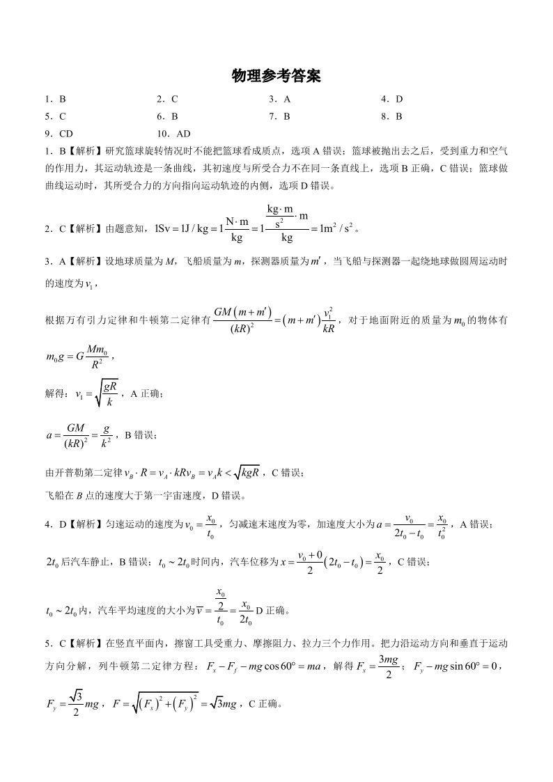 安徽省“皖江名校联盟”2023-2024学年高三上学期12月月考 物理答案