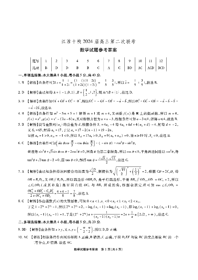 安徽省江淮十校2023-2024学年高三上学期第二次联考 数学答案