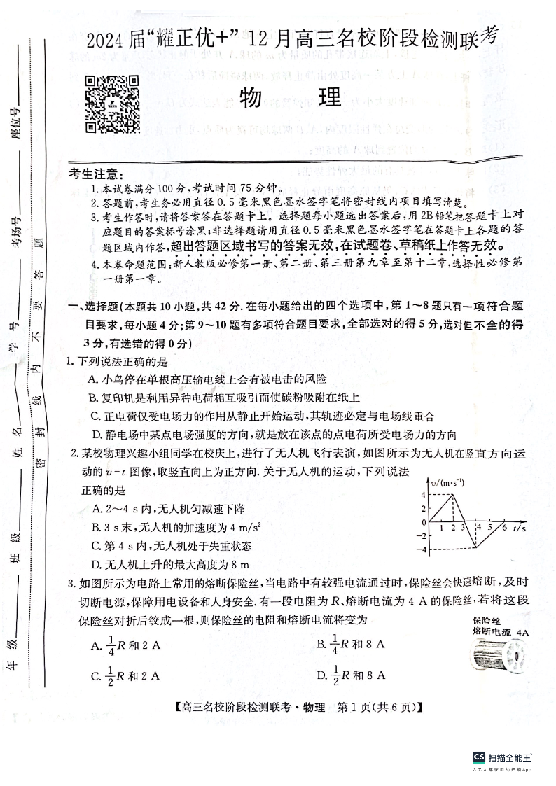 2024届“耀正优+”12月高三名校阶段检测联考 物理