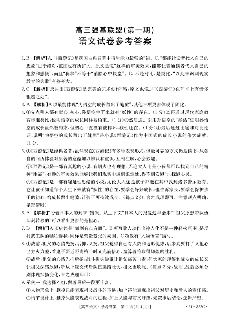 河北省强基名校联盟2023-2024学年高三年级下学期开学联考 语文答案