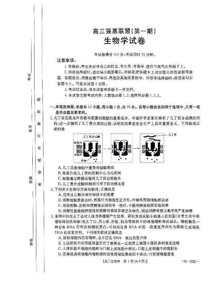 河北省强基名校联盟2023-2024学年高三年级下学期开学联考 生物