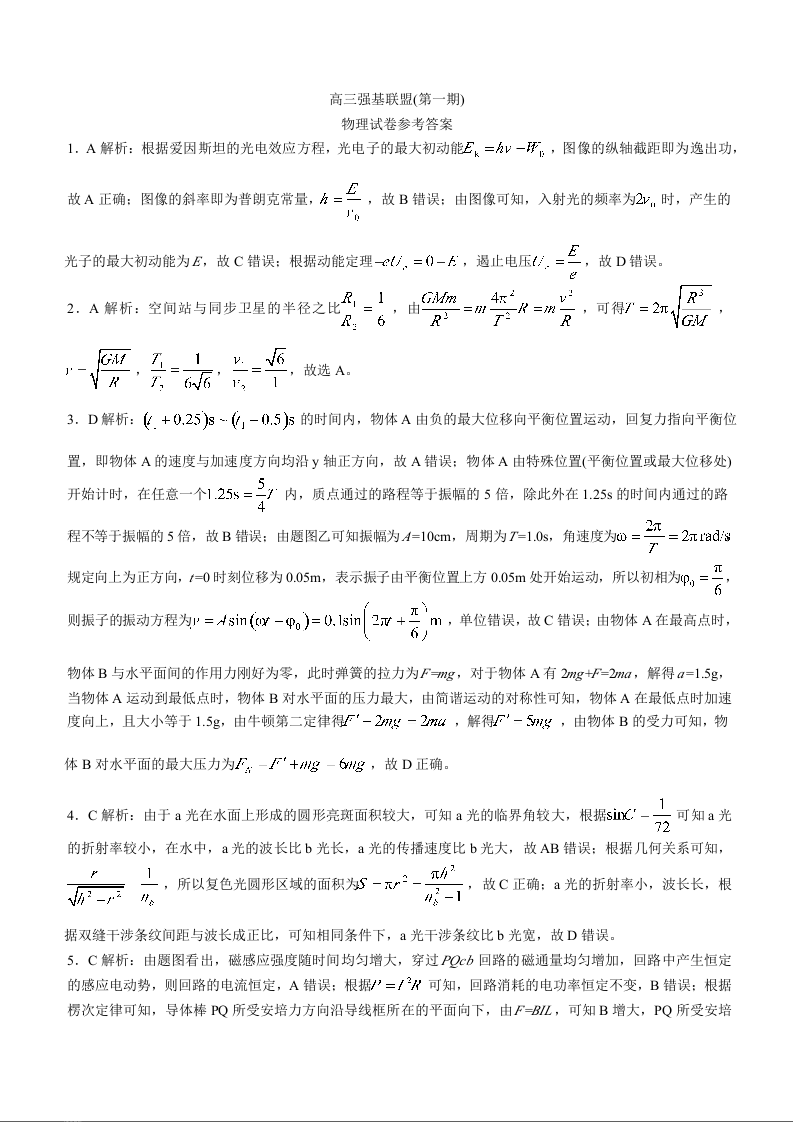 河北省强基名校联盟2023-2024学年高三年级下学期开学联考 物理答案