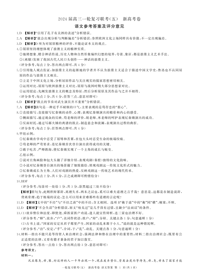 2024届百师联盟2023届高三一轮复习(五)语文答案