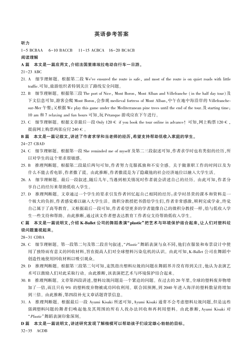 2024届百师联盟2023届高三一轮复习(五)英语答案