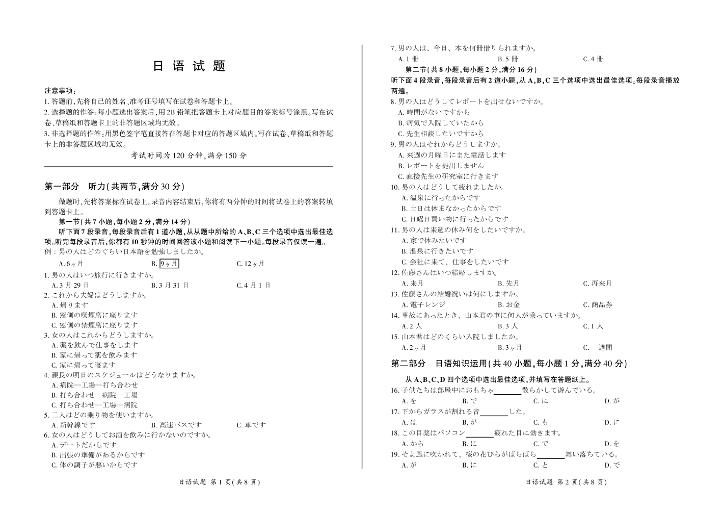 2024届百师联盟2023届高三一轮复习(五)日语