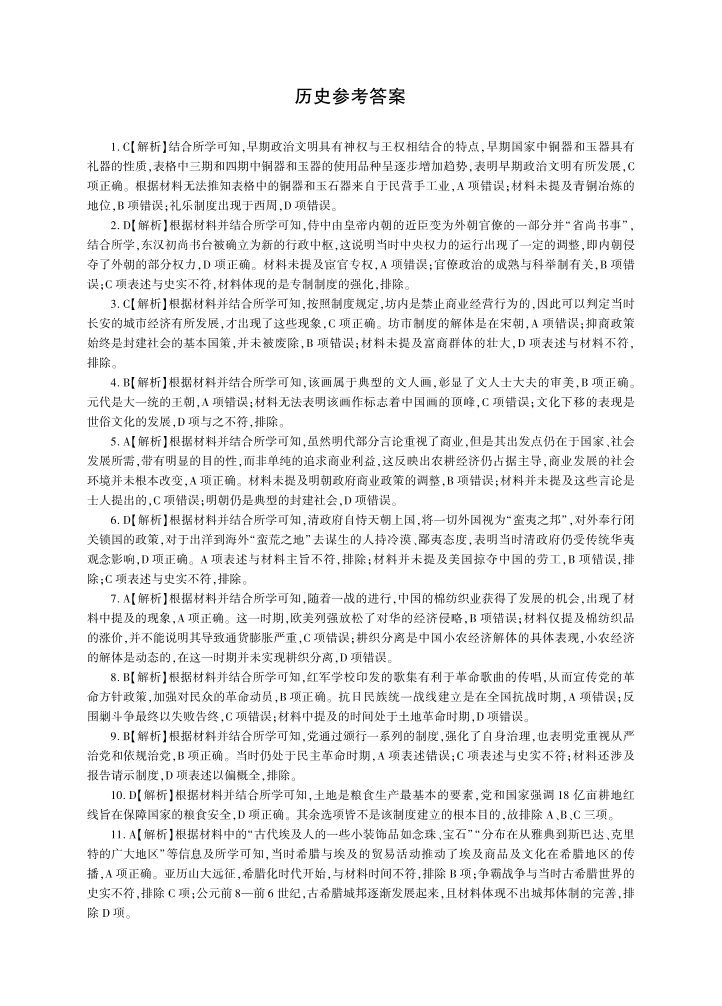 2024届百师联盟2023届高三一轮复习(五)历史答案