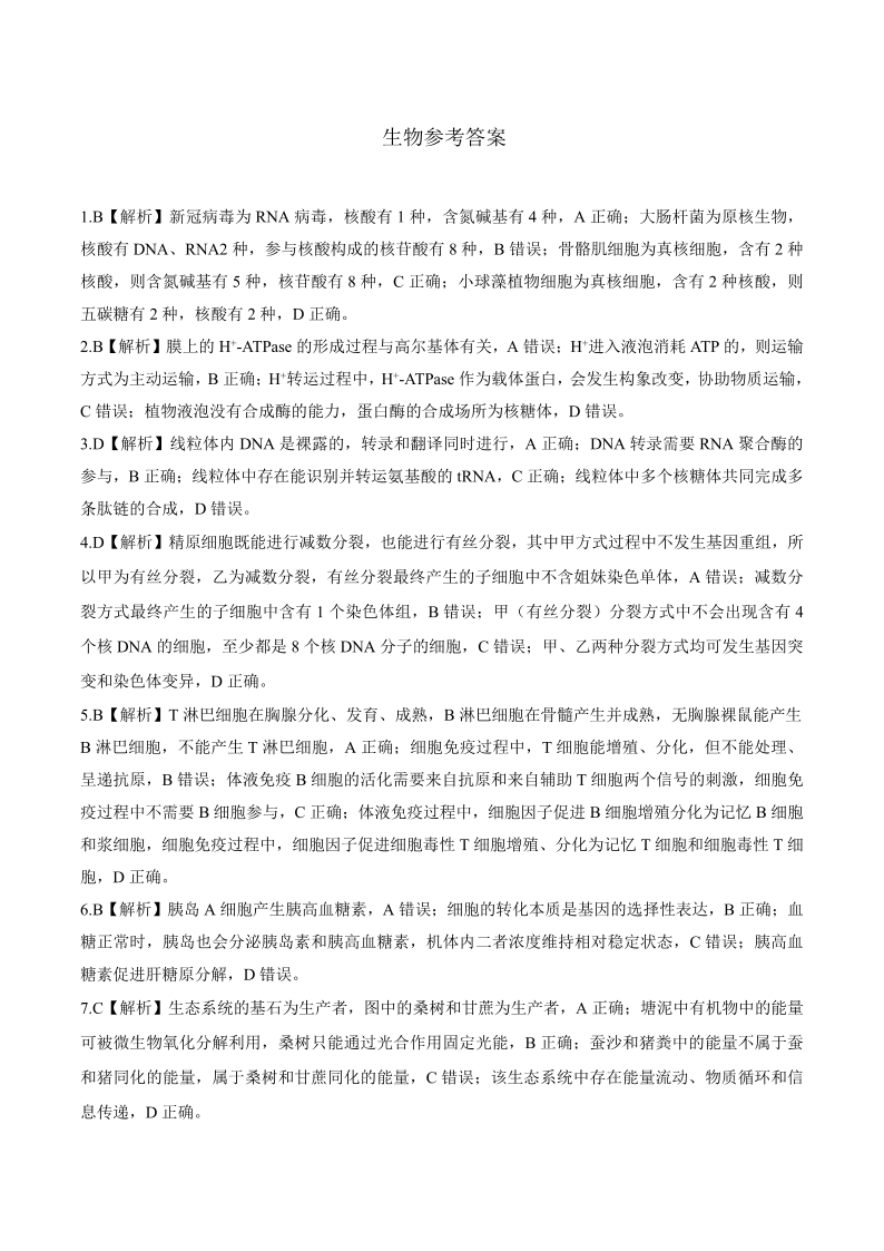 2024届百师联盟2023届高三一轮复习(五)生物答案
