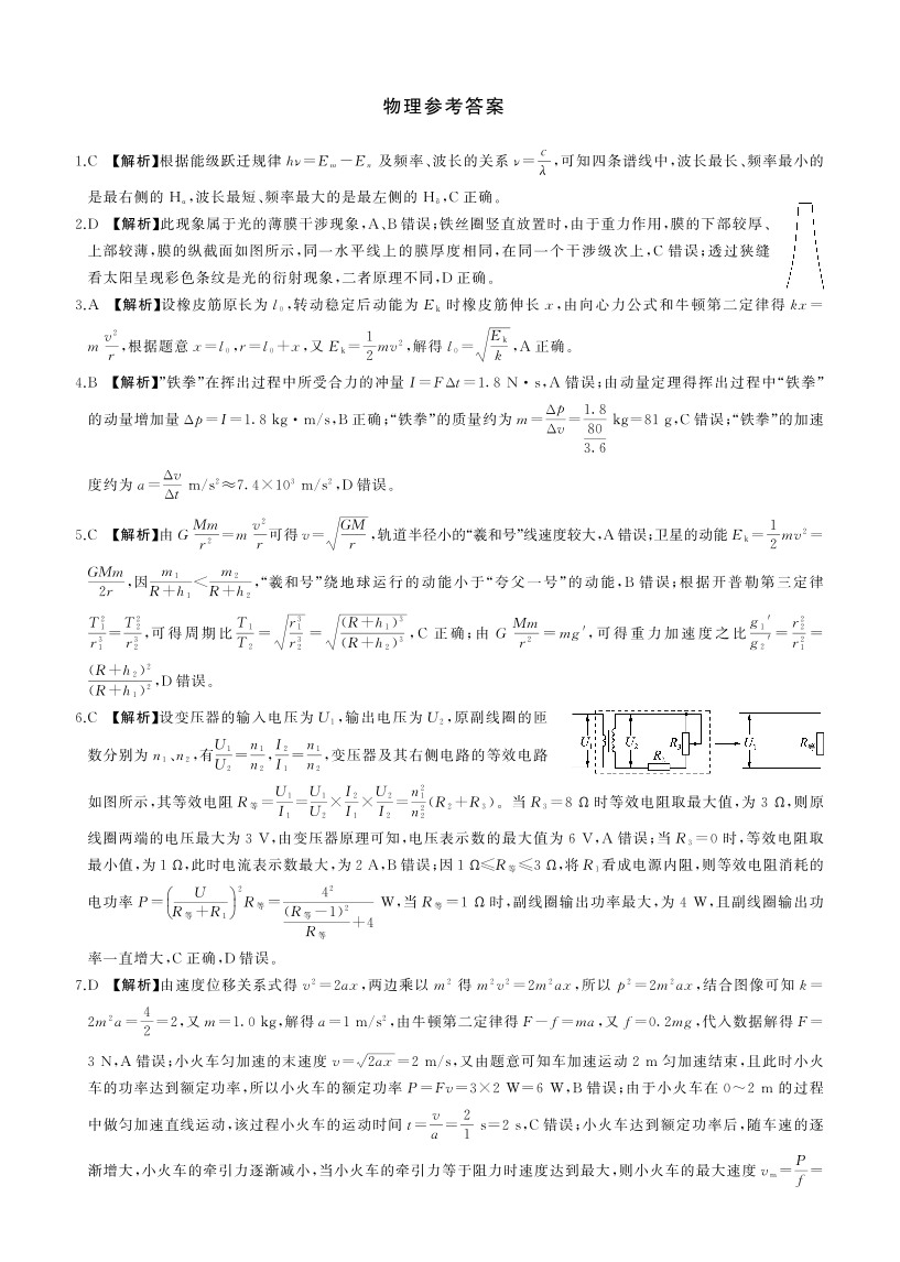 2024届百师联盟2023届高三一轮复习(五)物理答案