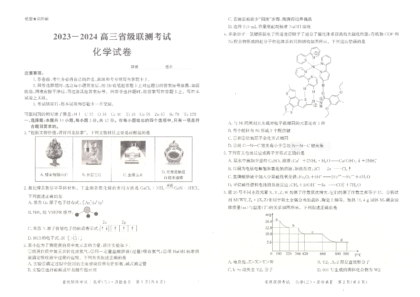 河北省2023-2024学年高三上学期省级联测考试化学试卷