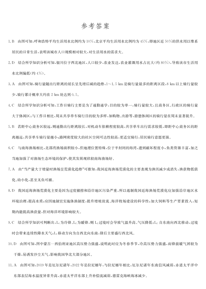 河北省唐县第一中学2023-2024学年高三上学期1月期末考试 地理答案