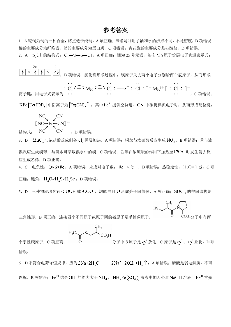 河北省唐县第一中学2023-2024学年高三上学期1月期末考试 化学答案