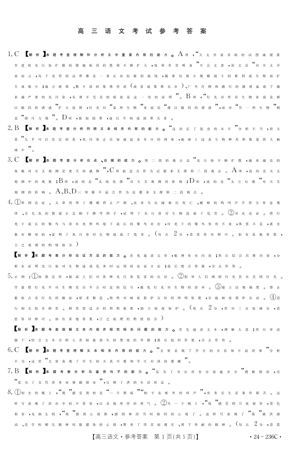 河北省保定市部分重点高中2023-2024学年高三上学期12月期末考试 语文答案