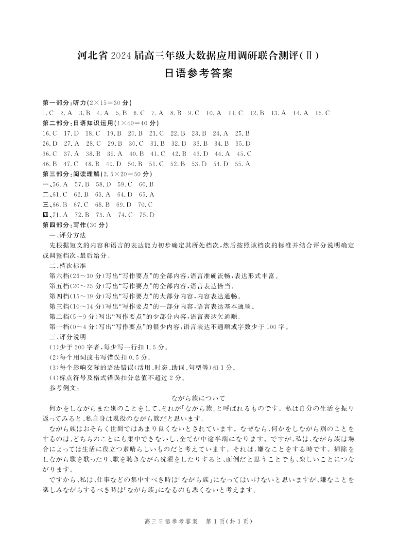 河北省2023-2024学年高三上学期大数据应用调研联合测评(Ⅱ)日语答案
