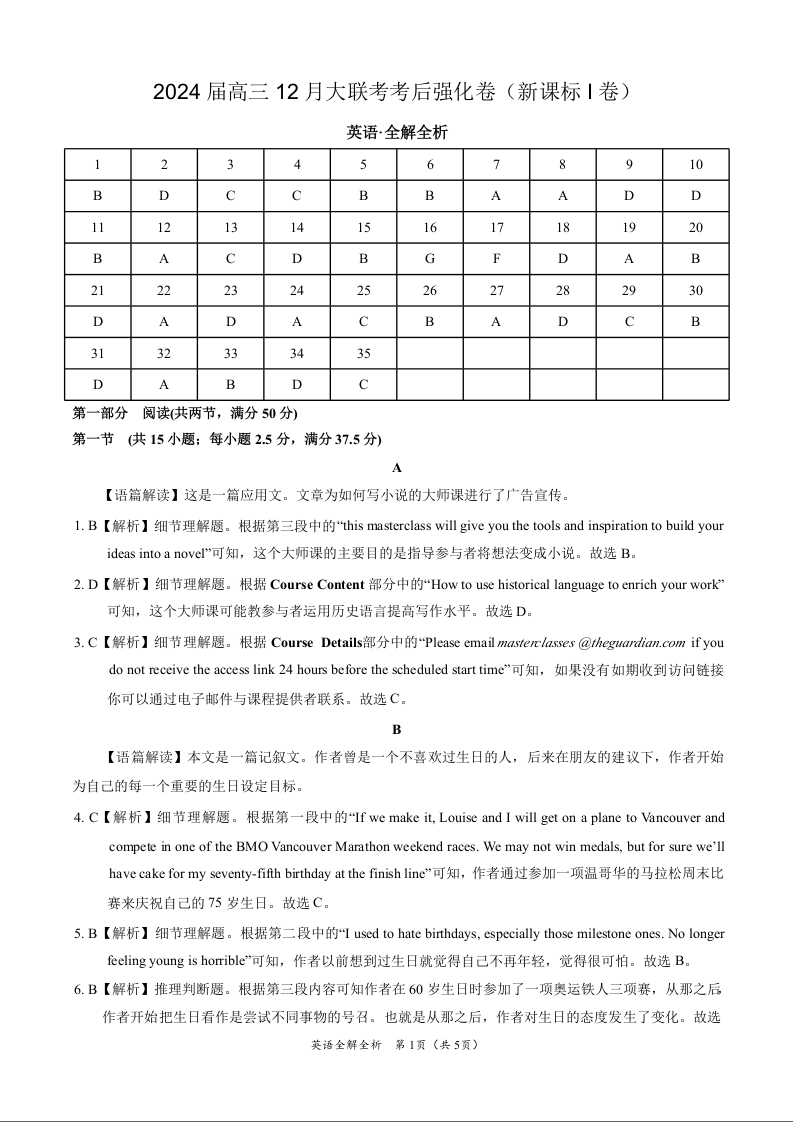 英语-2024届高三12月大联考考后强化卷(新课标I卷)(全解全析)