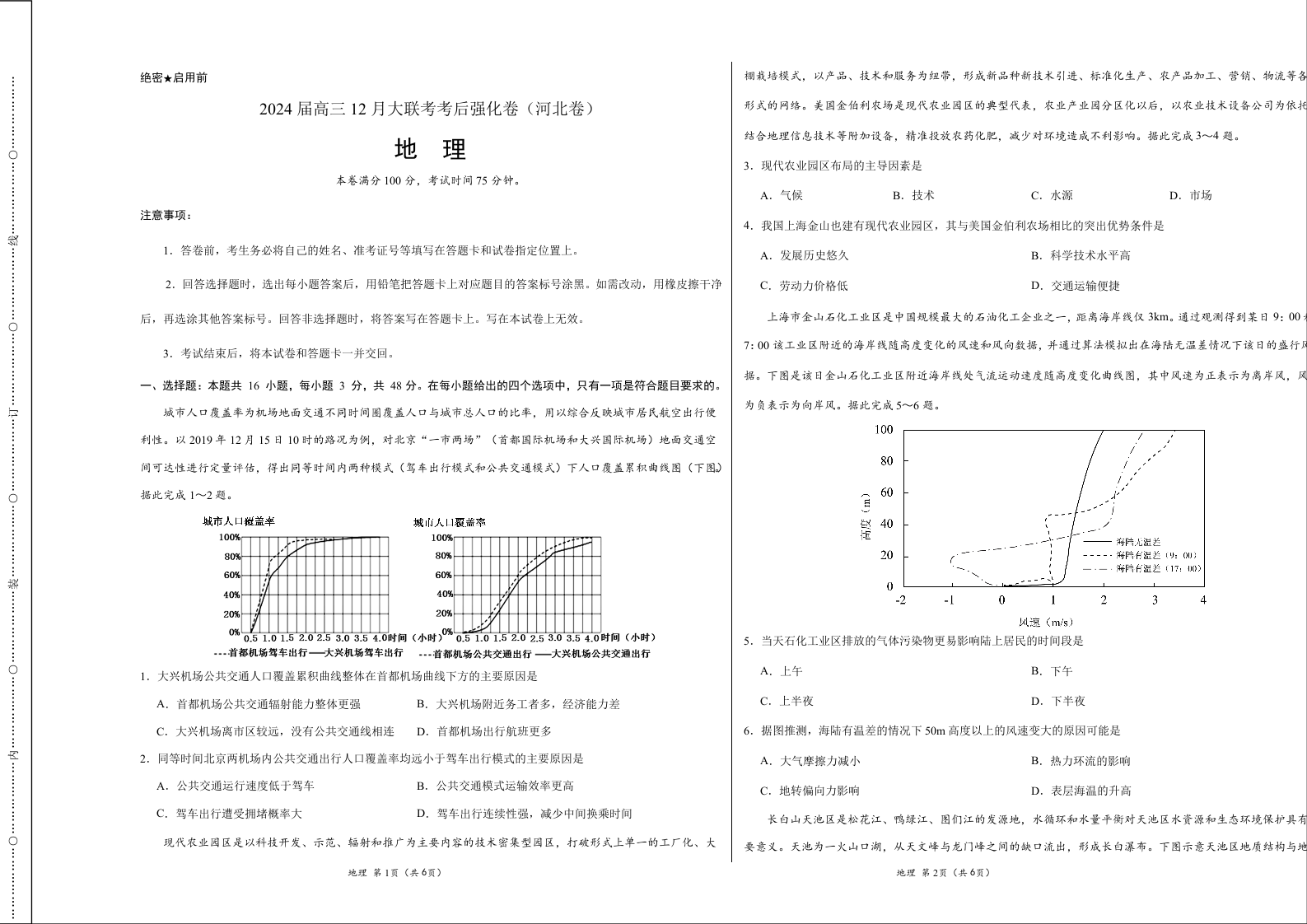 地理-2024届高三12月大联考考后强化卷(河北卷)(考试版)