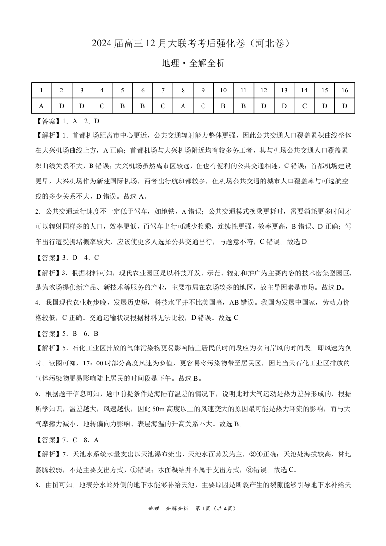 地理-2024届高三12月大联考考后强化卷(河北卷)(全解全析)