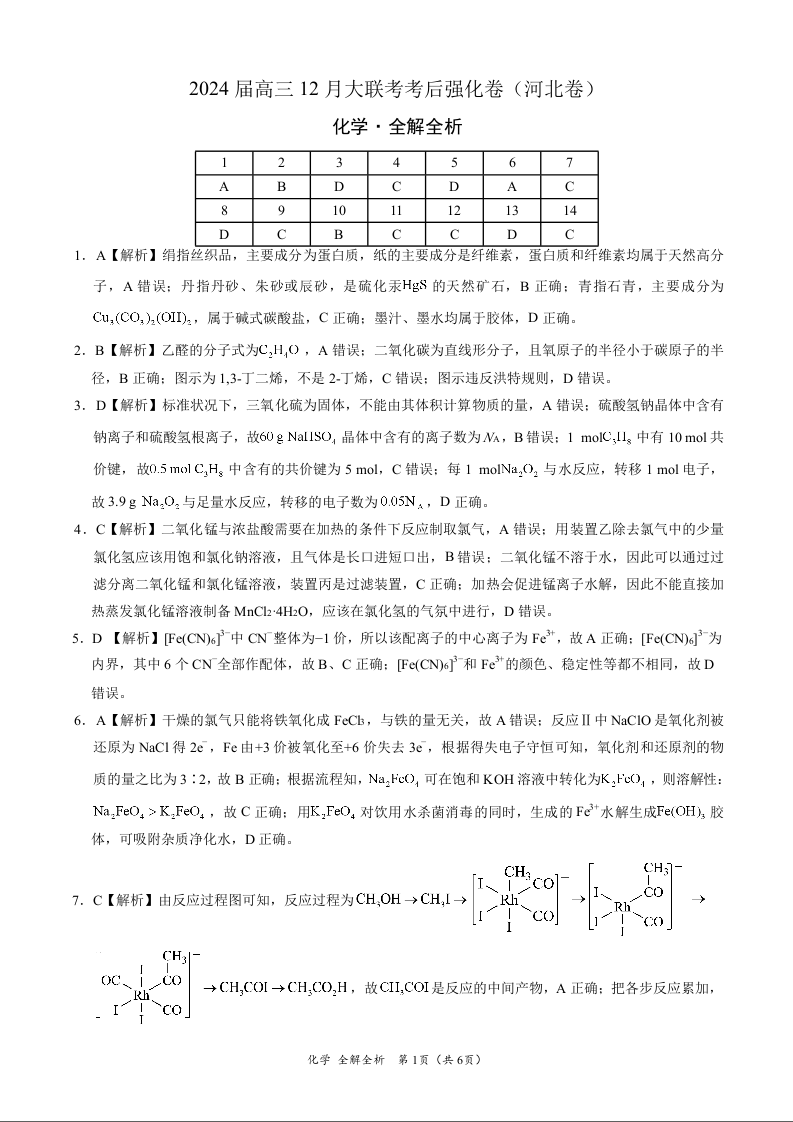 化学-2024届高三12月大联考考后强化卷(河北卷)(全解全析)
