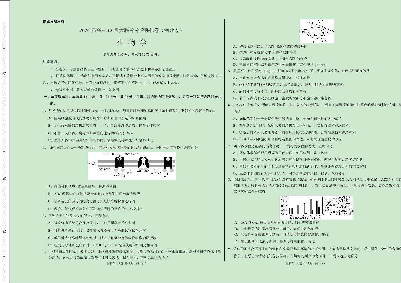 生物-2024届高三12月大联考考后强化卷(河北卷)(考试版)